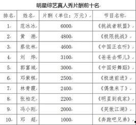 明星价格排行:揭秘明星们的“天价”